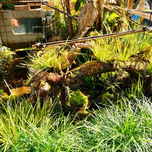 皆さま、こんにちは😃 本日は、仕事休みです♪ しかしながら、朝から! 土砂降り☂️この土砂降りの日になってしまいましたが、エアコンの清掃を業者さんに依頼してあったので、午前中、 ずーっと、その作業を見てました。 流石、プロ! ほんとに!綺麗にしてもらえました、良かったです。 さて、アクアリウム用の 流木を使って、 ムシトリスミレの流木付けを制作、かれこれ4年ほど 経ちます。最初は、流木の窪みに、水苔を入れて、 ハイゴケをはり、そこに ムシトリスミレを1株植えて作りました、時がたって 苔がモサモサ、 ムシトリスミレも何株にか 増殖、なかなか調子が良いので、他のムシトリスミレも乗っけてみました。 さて、この先? どう?なるでしょう?(笑)