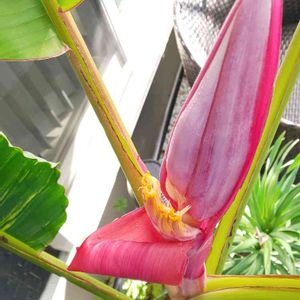 ミニバナナ🍌(ピンクバナナ)の蕾。台風15号になぎ倒されるかもなのであげておこう🎵