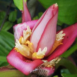 ピンクバナナ(ベルチナバナナ)🍌が絶賛開花中🎵 また種が大量に取れてしまうな😌