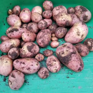 明日の天気予報は雨☔️ なので、 ジャガイモを全て収穫しました😀 大満足‼️ 我が家の一番人気の食べ方は、 薄くスライスして、グレープシードオイルで焼くだけ😊