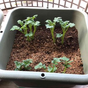 食べきれなかったジャガイモに芽が出てきたので、プランターに植えてみた。 白い芽が、葉っぱになってきてる!