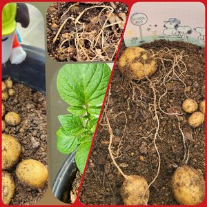 紫色の可愛い、ジャガイモ🥔の花も終わり、前回投稿から2ヶ月が経ち葉も枯れだして来たので、昨日掘り出しました😊 1つ駄目になっていましたが、水耕栽培から土に植えたのが遅く寒い時期で、これだけ採れたら良しとしましょう😁 pic4は、12月8日頃の花が散る前の写真です☺️ また紫色の花を咲かせたいです😊