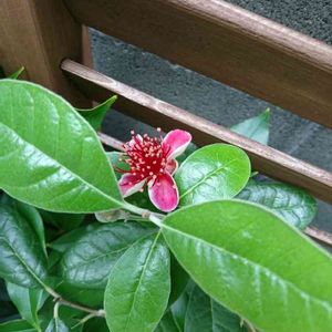 フェイジョアの花が咲きました 去年より1ヶ月程遅い…? でも咲いたのこのひとつだけなんで この子は受粉できないかも…