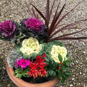 おはようございます😊 今日はあいにくの☔️ お正月用の寄せ植え作ろうと、色々買って鉢に仮置きしてみるんですけど、なんかしっくりこない😅 皆さん、センスあってお洒落なのに、自分のセンス無さに意気消沈😆 素敵な寄せ植えの投稿見てると、あれもこれも良くって、実際お花買いに行くと、寄せ植えの想像して買えない😅 あ! 今日の花、葉牡丹はあります😆 本当は黒い葉牡丹欲しいんですけど、まだ出会えてないんですよね〜😞