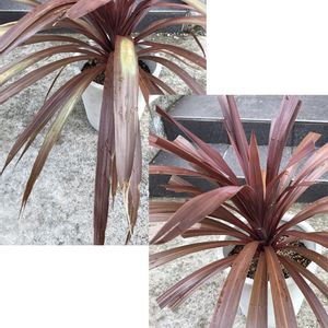 コルジリネ レッドスター 葉焼けにこの前の台風が重なり、可哀想な事になっていました😣 葉っぱの先が千切れてバラバラで、もう再生はしないだろうと思い、全部カットしました❗️ スッキリ✨&コンパクト 成長点は元気なので元気な葉っぱで早く更新していってほしいです😙