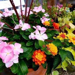 おはようございます🍀 コルジリネとニチニチソウとランタナの寄せ植えがいい感じになって来ました🎶