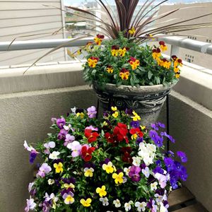 昨年秋からの寄せ植え。ビオラのウォールバスケット。コルジリネとビオラの寄せ植え。これで見納めにしよう。