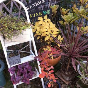 アナベルも紅葉するんですねー。黄色くなりましたー♪去年は気付かず… (//∇//) シロタエギクの白、 コルジリネの赤紫、ヒューケラの紫、ワイヤープランツとナスの緑、ブルーベリーの赤、とベランダから見た庭がカラフル だったよー♪