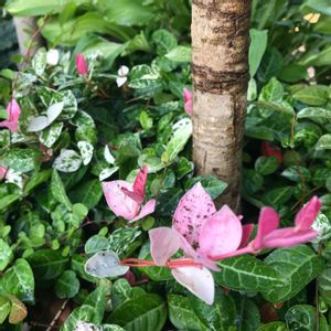 ガーデンシクラメン....コルジリネの根元でまだ咲いています🌸