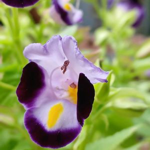 💜夏すみれ(トレニア ライムシャワー)💜 お迎えした時に 夏すみれ とタグにあり来夏まで咲かないと思っていたら2輪咲きました。あれ?トレニアにそっくり😲確かにトレニアリング💍もあります。葉が特徴的な葉脈に模様があります。 調べてみたら 夏すみれ はトレニアの一種別名でした。開花とトレニア別名に驚きました。ご存知でしたか? 別名 ハナウリクサ ムラサキミゾホウズキ