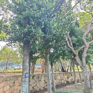 The沖縄の木 フクギ 海洋博公園そば 有名な備瀬のフクギ並木 木漏れ日が綺麗 ネコちゃんも寛いでました🐱 幹が丈夫で葉が密生しているフクギは 台風が多い沖縄で家屋や集落を守る役割を担ってきたそうです