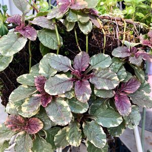 アジュガのマルチカラー💕 ハンギングの隙間埋めに入れたんですが… 沢山垂れ下がって、すっかりメインになっています。 アジュガはグランドカバーに使うのが普通ですが… 可愛いからまあいいか😆