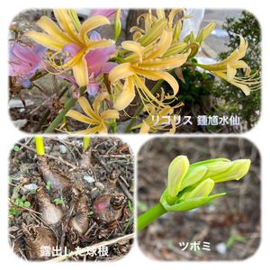 おはようございます♪ リコリス達が次々開花❤️ ヒガンバナ属❣️ ⭐️鍾馗水仙(黄花曼珠沙華)❣️ Lycoris travbii❗️ "紫狐の剃刀"の花の横に沢山のツボミが上がっていたので「もうそろそろ満開か」と見て見ると「花色が違う!」🤪 "鍾馗水仙"が萎れ始めた"紫狐の剃刀"に替わり開花開始❣️ 直ぐ横には"白花曼珠沙華"も開花準備完了みたい❣️ また、直ぐ横には土から露出した球根から次々にツボミが上がって来てます、どんな子(花)かな?、毎年見てるのに覚えて無い❗️😅