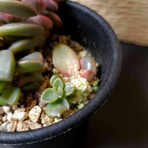 引き続きgreensnapmarchでの購入品、デルトイデア錦さんʕ•ᴥ•ʔ✨ 完全に一目惚れ、というか衝動買いです(´д`) 白ピンクの葉に緑の斑入りみたいになってる葉がたまらないです😆 斑入りフェチにはもってこいの品種ではないでしょうか( ´艸`) クラッスラの中ではかなりお値段張りましたが後悔はしてませんʕ`•ᴥ•´ʔw