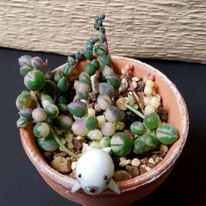 久々の二日酔いでグロッキー中の熊です(´+ω+) お酒は程々に、、、 本日はグリーンネックレス錦さんʕ•ᴥ•ʔ✨ カットで購入しましたが植え付けて一週間でシワッシワに😨 このままダメになるかと思いつつ少しずつ水あげてたら、最近急に元に戻ったので投稿します😂 グリネは昔から好きなのですが鬼門で、小学生の頃何度も枯らしてそれから多肉は一切諦めた経緯がありますorz 今思い返すと良く知らずに真夏でもガンガン水あげてたのがダメだったんでしょうね、、 無知って怖い(´д`) 今回何とか成長をし始めましたが、何か赤紫色?の不思議な色合いになりました👻 我が家のLEDで葉焼けする多肉はこの子だけです。 とりあえずこのまま様子見😼 それはともかく、鉢ちっちゃすぎたかなʕ•ᴥ•ʔ