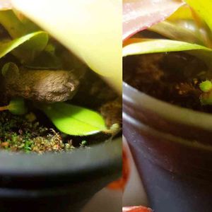 ついでにネペンテス・Gayaさん連投ʕ•ᴥ•ʔ✨ 植え替えしなきゃなー、と思って根本をかき分けたらあちこちに子株吹いてました( Д ) ⊙ ⊙ まだ親もろくに成長してないのに、、、(´д`) この子の吹きやすさは誰譲り何だろう😂 とりあえず植え替え一旦保留します🙍 にしてもこんなに小さいのにいっちょ前に赤くなろうとしてるのが面白いʕ•ᴥ•ʔ