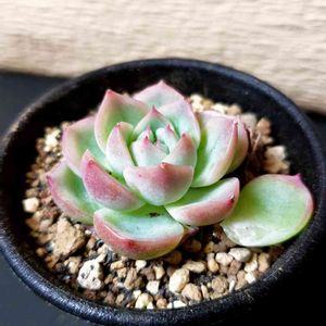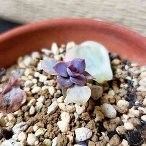 仕事終わらないので休憩がてらもう一投(´д`) 去年オマケで頂いたブラックオブ錦の葉挿しさんʕ•ᴥ•ʔ✨ 前回投稿後水あげたら親葉が腐ってポロッと取れ、「あ、終わった、、、」と思いましたがなんと生き残りました🙌 ここまで育つのに一番苦労したのは、耳掻きの先よりも小さかったので根が伸びると草体が浮き上がってしまう事でした。 押さえつけることはせず、浮き上がってきたらその分土を足す、を繰り返しました😂 (ワイプの頃より土が増えてるのはそのため) その結果今は浮き上がることもなくなり、ムチムチした葉が五枚に増えました🙌 噂には聞いてましたが、ホントに小さいうちは玉扇のように扇形になるんですね😃 これからどう育つのか楽しみです