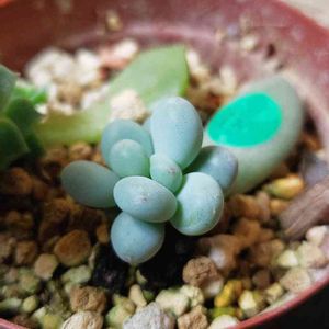 去年夏にオマケで葉っぱを頂いたものの3ヶ月以上も根っこしか出てなかった星美人さんの葉挿しʕ•ᴥ•ʔ✨ 芽が出始めた~、って投稿を以前しましたが、こんなにムチムチになりました🙌 でも葉挿し始めて9ヶ月でやっとこれなので、だいぶ成長遅いんですねぇ(´д`) 最近色々な多肉を知るようになって、~美人という系統を多数見かけるのですがこの美人付きの多肉って全部同じ種類の変異種なんでしょうか?? アメジスチヌムやブルーヘイズは美人って付いてないし(´д`)ヨクワカラン ウチにももう一つ美人シリーズ有るのですがまた後日ʕ•ᴥ•ʔ