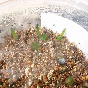 コッソリと今年1月に播種してたハオルチア・玉扇さんʕ•ᴥ•ʔ✨ とうとうハオの発芽に成功しました(・ω・ノノ-☆*パチパチ 思い切って玉扇の優良交配とやらを購入したので多少値が張りましたが、10粒中6粒から発芽したので、個人的には花丸です🙌 有名なタッパーレンジ無菌方式で成功しました😆 ですが写真ではラップ越しなので分かりづらいですが、一株根が持ち上げちゃって倒れちゃいました(´д`) 問題はここからで、いつラップ外して、いつ植え替えればいいか分かりません(´д`) 早く倒れた子を助けたいʕ•ᴥ•ʔ