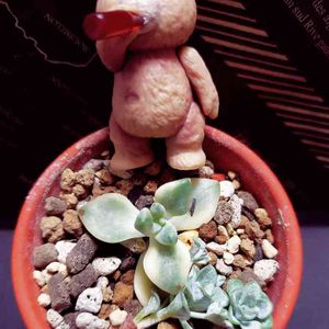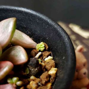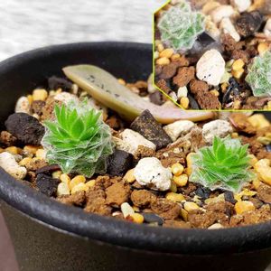 ネタ投稿したところで、普通のを(笑) 保険で置いておいたピーチ姫の葉挿しさんʕ•ᴥ•ʔ 多頭なのは良いんですが、なんか真っ黄緑? 全斑という奴でしょうか😏? 後から出てきた手前の子は逆に赤黒っぽく、斑が入っていないようなのでどうやらブロンズ姫に戻ったらしい😂 斑入りの葉挿しってこういう変動激しいので面白いですよねʕ•ᴥ•ʔ