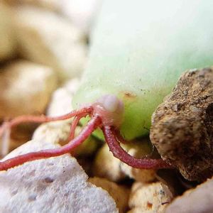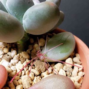 以前投稿したブルーヘイズさんの抜き苗を植え付けるときに、保険で一番下の葉をもいで根元に置いておいたらえらいことにʕ•ᴥ•ʔ そのうち「キシャー!!」って鳴きそう👿 なんでウチの葉挿しっ子さん達は根が暴れるのでしょうね😒 手前と左にチラリズムしてるのはアメジスチヌムの葉っぱです😆 赤青のムチムチ丼にしてみたくて同じ鉢に置きました😃 届いて一週間で根が出始めたのでいい調子です✨ ここに星美人も植え替えて赤青緑も面白そうてすがさすがに狭いかな(´-ω-) 以前頑張れシリーズで出たアメジスチヌムの枝は結局☆になってしまったので、、、😭 供養の意味でも一から(?)育てる事にしましたʕ•ᴥ•ʔ