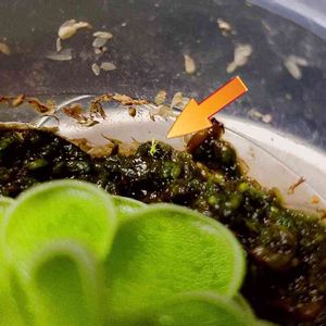 謎の芽繋がりで、、、 エセリアナさんの鉢に突如として現れた謎の芽。 届いたとき植えてあった鉢がプリンの容器だったので面白くてそのまま育てました。 なので栽培元に生えてた雑草が生えてきたのかと思ったら、写真では分かりにくいですがよく見ると繊毛らしき物が✨ どうやらなんかのドロセラの芽のようです😆 栽培元で何のドロセラが育てられてたかは分かりませんが、大きくなると良いですねぇ(´д`) でも結構購入時の鉢でそのまま育ててると、あるあるですよねʕ•ᴥ•ʔ