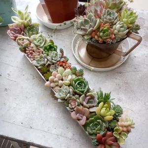家にある多肉をちまちまちぎって 寄せ植えしてみました🌵 会社の子へプレゼントします😊 喜んでくれるといいな🏵️
