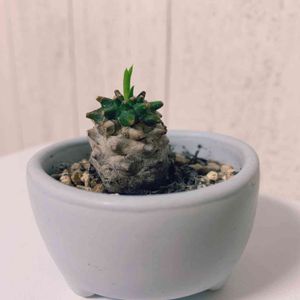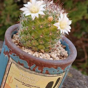 タワーポット寄せ植えに住んでいる小さな謎サボテンちゃん 長男がスーパー内の園芸コーナーで買ってきました マミラリア系でしょうか? サボテンはあまり知識がなく💦