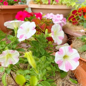 我が家の可愛い担当、サントリーフラワーズさんのサフィニアアート ももいろハート💕 まだ植えたばかりでハート模様もはっきりしないけれどこれからが楽しみ✨