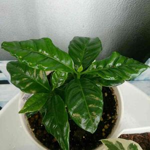 一時期葉焼けをしていたf^_^;コーヒーの木、艶々に育ってきました。良い感じです❣ 陽射しに慣れたかな? (๑ơ ₃ ơ)♥