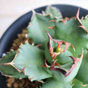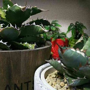 チタノタの棘の成長。 下から2番目、左下に伸びてる葉は、まだ棘が小さくて、間隔も離れてます。 その上の左上に伸びてる葉は、棘の幅が大きくなって、その分数が減ってます。 そして一番新しい内側の葉は、4列目までが連棘になって一層大きくなり、数が減って、大人の歯並びに。 葉も幅広になってきました。 たぶん3年目、この辺りの成長は葉が出るたびに姿が違ってとってもおもしろい!😊