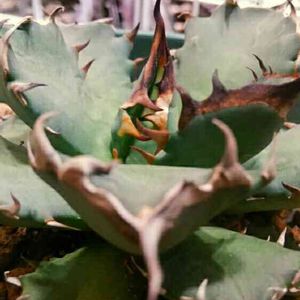 裏トゲ⁉️ アガベ チタノタ のスゴイやつ‼️ (W8cm) スピン下の葉裏に小さいトゲがあります。新たに展開中の葉は全てにあるようです。 これはシエラ・ミクスティカ系に似てると思いますが、詳細は不明です。FO-222のロブスター系の裏トゲとは違います。姿はFO-076に近いと思います。いずれにしても将来が期待できます❗️