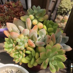 4日間のお盆休み 今日で終了🫥 12日は父の命日……年々この暑さの中のお墓参りがしんどい💦 親戚が帰った昨日 多肉に水やりしたかったけど疲れ果てました😝 明日から台風の影響が出てくるみたいなので……近所迷惑にならない様 今日の夕方から台風に備えます(ー̀֊ー́˶ჱ̒ 段々多肉が色づいてきた➰🎶