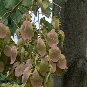 おはようございます😃 オリンピックが深夜にあって、昼は猛暑。 睡眠が不規則になります。 熱中症にならないように、昼はエアコンの効いた部屋でテレビを観たり、YouTubeを見たりして過ごしています。😅 これはアオギリの実です。 7月初めに、花を投稿しました。 そこに個性的で美しい実ができました。😘 実の膨らんだ所に小さな丸い実が数個入っています。 秋になって、外側の殻が枯れて割れると、焦げ茶色の実が出てきます。 私は今の、柔らかそうで、中が透けるような房の状態が大好きです。 黄緑色と薄いピンクで、和菓子にしたいような色合いと形です。 生八ツ橋のようなお菓子を作ったら売れそうに見えませんか?
