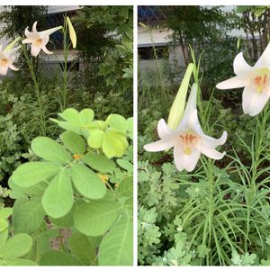 おはようございます😃 快晴、朝から暑いです。 予報によれば今日名古屋の最高気温は38度だそうです。 この夏最高気温になりそうです。 こんな日は運動はせずにエアコンの効いた部屋で大人しくしているのが良さそうです。 7時頃、30分ほどの散歩です。 他所のお庭です。 白いユリとエビスグサです。 このユリは最近どこでも見かけます。 テッポウユリでしょうか。 花筒の裏側に紫色の縞があるタカサゴユリと共に完全に日本の環境に適応して自生しています。 日本のヤマユリは球根で繁殖しますが、これらは種から一年で花を咲かせるようです。 私の故郷群馬県では昔、大きなヤマユリをよく見かけました。 しかし、今ではほとんど見かけなくなりました。 私はカサブランカよりもヤマユリが大好きです。😘 手前のエビスグサに小さな黄色い花が咲いています。 ハブ茶はこのエビスグサの種子ケツメイシから作られるそうです。 昔はハブソウから作ったようですが、今はこのエビスグサから作るようです。 私も畑でエビスグサが栽培されているのを見かけます。🤔