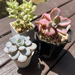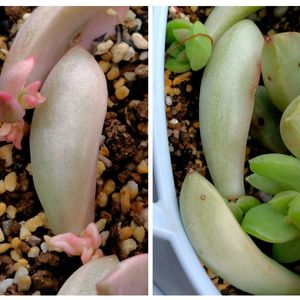 おはようございます☀️。° ⬇️黄麗錦 クリーム色というか黄色というからこの色がとてつもなく可愛い色💛 ⬆️秋麗 プックリ葉に先がピンク色でキュン (*´`)♡ 2つとも我が家にはいなかったので、 お迎えしてきました。:°ஐ..♡*