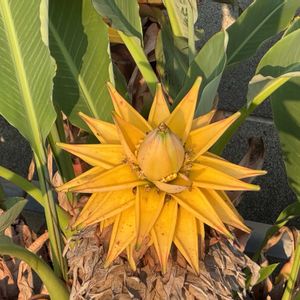 2024.9.1 Sunday ☁️🌥☂️☁️ すこーしだけ空の青い所発見! と思ったら雨粒が落ちてくる。 増えるのは洗濯物ばかり! お花さんたちもムシムシした中でドンヨリしてる… と思ったら、案外元気です。 お花は、先週行ってみた植物園に咲いてたチユウキンレン(地湧金蓮) というお名前の植物です。 植物園の温室を出た所に生えていて、お花が咲いていました。 花弁に見えるのは、幾重にも重なった苞で、その付け根に小さく見えるのが花だそうです。 2枚め 苞とお花の全体 3枚め 株全体 〜メモ〜 バショウ科ムセラ属 多年草 別名 チャイニーズイエローバナナ 中国原産 帰化種 葉はバナナに似ているが食べられない。 苞の部分は300日ほど鑑賞でき、その株は枯れるそうです。 枯れるが、脇芽ができて翌年も楽しめるそうです。