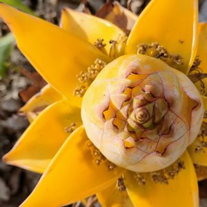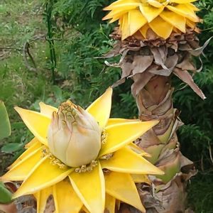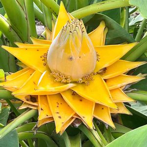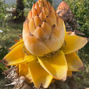 バナナに似ていて 別名:チュウキンレン(地湧金蓮)、 チャイニーズイエローバナナ 耐寒性非常に強く室外でも越冬可能 300日咲き続けることから 幻の珍花と呼ばれる♬ 知れば知る程💠存在感のある植物🫡 (植物園内にて✨) 🏷月曜日にビタミンカラー