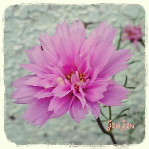 今日の花 コスモス ダブルクリック スノーパフ こちらも八重咲き🌼スノーパフという名前もかわいいです💖 📷過去picより