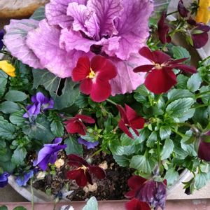 今晩は 園芸店にビオラ パンジーがいっぱいです 本当に可愛いですね ビオラ5個だけ買いました(⑉> ᴗ <⑉)♡