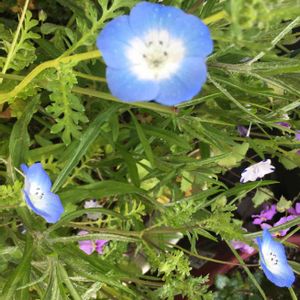 おはようございます🌞 今日のお花💕 ネモフィラ💙です お花が可愛い顔に見えますよね? 可愛いお花ですよね〜💕