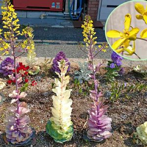 こんにちは☔️/☁️/☔️ 寄せ植えの葉牡丹が ルピナスの様な状態に❣️ 葉牡丹タワー格好良いなぁ💕🌼 横で桃色アセビとイベリスが 笑っていますわ😍( ◠‿◠ )🌸 笑ってコロナを吹き飛ばそう!
