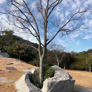 山陽道の佐波川SAにて(山口県) 石と木の融合がテーマっぽい休憩所