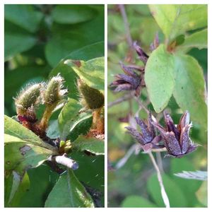 ヤマツツジ ツツジ科ツツジ属 半落葉低木 左は若い果実😊 右は割れた蒴果です(昨年)🥰 中に種は残っていませんでした。 それより残された殻に一目惚れ💓 素敵だ😆カッコいい💓💓💓 追記:どちらも同日(9/5)の撮影です