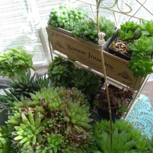 年中室内のハオルチアたち。 写真は軟葉系メイン(硬葉系メインは別(窓際))。 外にスペース無いし、遮光環境作るの大変だし、ガラスや網戸越しだけど日は当たるし、この環境ですまん(´・Д・)」というハオルチアたち。 ガステリアたちもそんな感じ。 徒長が酷くならないし、年中緑だし、常に視界に入るし、もうこの環境が止められない:(っ`ω´c):プルプル 室内組は冬よりも真夏が一番キツいと思う。 今はチラホラ花芽を伸ばして咲いてきている。 写真下の子はルテオローザ。 下から子株が出てきて去年から更に群生しそう。 見た目から私の中では室内用アロエ。 壁|ω•`๑) 。oO(私が多肉にハマるきっかけのハオルチアの投稿がかなり少ない。ヾ(_ _*)ハンセイ・・・)