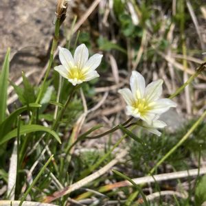 千島甘菜(チシマアマナ) ユリ科 チシマアマナ属 多年草 花期 6下~8月 北、本(中部地方以北) 和名は発見地が千島列島(ウルップ島)で姿がアマナに似ることによる。 高山の乾いた草地、岩礫地。 根出葉は2~4個が互生、葉の形は線形で、やわらかい茎葉をもつ。 長さ7~20cm、幅約1mm。 白い花を茎の先に1つ付ける。 可愛い💕