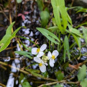 ① シロバナサクラタデ/白花桜蓼 タデ科 イヌタデ属 原産地:在来種(日本全土) ・山野草 ・多年草 ・草丈・50-100cm ・花期:8-10月 ・花序:穂状で長く、その先は垂れ下がる ・花径:4mm ・花被:長さ3-4mm、白色、5裂まれに4裂し、腺点がある ・花:異形花柱性 (短花柱花と長花柱花の2形) ・短花柱花:雌しべの長さ約2.4mm、雄しべの長さ4.3mm、雄しべが花被より突き出る ・長花柱花:雌しべの長さ約4.3mm、雄しべの長さ約2.4mm、雌しべが花被から突き出る ・雄しべ:6個まれに7~8個 ・花柱:2まれに3分岐する ・果実:痩果 長さ約2.5mm、レンズ形が多く、3稜形が混じり、黒色、光沢がある ・別名:コサクラタデ、ヒメサクラタデ 花言葉:「優雅な清楚さ」、「愛くるしい」、「幸運」、「幸運が来る」 ② ガガブタ/鏡蓋 ミツガシワ科 アサザ属 原産地:日本、東南アジア ・抽水植物 ・多年草 ・一日花 ・花期:7-9月 ・花径:約1.5cm ・果実:さく果 楕円形で 長さ4-5mm ・種子:広楕円形で光沢があり、長さ0.8mm ・別名:オトコジュンサイ、イカリモ、金銀蓮花、白花荇菜、印度荇菜、和製バナナプラント、ニンフォイデス・インディカ 花言葉:「心の純潔」「純情」「信頼」 ·͜·ᰔᩚ 初めまして ※ 環境省レッドリスト 準絶滅危惧 (NT) ③ ナガバオモダカ/長葉面高 オモダカ科 オモダカ属 原産地:USA(フロリダ州、ノースカロライナ州、サウスカロライナ州、バージニア州) ・雌雄同体(雌雄異株もある) ・雌雄異花 ※ 日本で野生化が確認されているのは、雌花だけの雌株 ※ 日本では結実ぜず、走出枝を出して栄養繁殖する ・抽水植物 ・一年草か多年草 ・葉:長さ7-30cm 長い楕円形で葉縁に鋸歯はない ・草丈:20-60(-100)cm ・花期:5-9月 ・花序の上部が雄花、下部が雌花 ・花弁:白で3枚 ・花径:1-1.5cm ・花序:円錐花序 ・別名:ジャイアント・サジタリア 花言葉:「高潔」 ※ 外来生物法により要注意外来生物に指定されている ·͜·ᰔᩚ初めまして ④ ヌマトラノオ/沼虎の尾 サクラソウ科 オカトラノオ属 原産地:在来種(本州、四国、九州) ・山野草 ・多年草 ・草丈:40-70cm ・花期:7-8月 ・花:総状花序 長さ10-20cm ・苞:長さ2-3㎜mm ・花柄:苞と同長又はわずかに短い ・花冠:白色、5裂、長さ約3mm、 ・花径:5-6mm(黒色の腺点がある) ・果実:蒴果 球形 ・果径2-2.5mm ・種子:球形 胎座の窪みにはめ込まれ、幅約0.7mm 先がやや丸く低い、円錐状 ・別名:ヌマハギ(沼萩) 花言葉:「協力」 ⑤ ユリ (カサブランカ) 花言葉: 白:「純粋」「無垢」