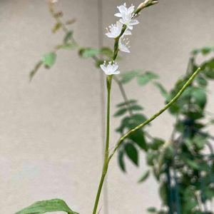 白花桜蓼はタデ科イヌタデ属だそうで あわてて今日のお花だから投稿します。 湿地を好むらしいのですが この夏水やりをしなかったのでコンテナの中で枯れていましたが、 なんと一本咲いたではありませんか❣️ 咲いたので 🏷️秋の十草の2種目にします💕