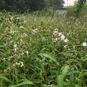シロバナサクラタデ(白花桜蓼)が咲いていました。 名前の由来は、花が白色でサクラタデに似ていることから✨ 花径🌼は長さ3~4mmで、サクラタデの方は長さ5~6mmと大きさが違います🎶😃
