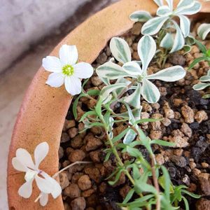 今朝、シレネのお花❣️😱 と、思ったら、 アレナリア·モンタナでした~🎶🙆🙆🙆 可愛い~💗 どちらも挿し芽ですが、 これから、持ちこたえられるか?? 頑張れ~😊~😊~😊